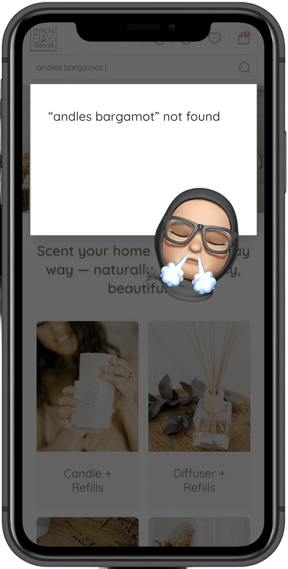 I just mistyped "candle" as "canle" — one letter off — and the whole search just dies. No suggestions. No corrections. Just a blank page.