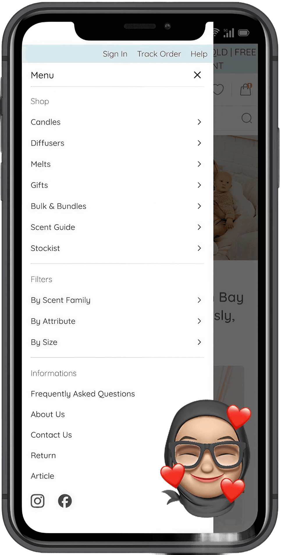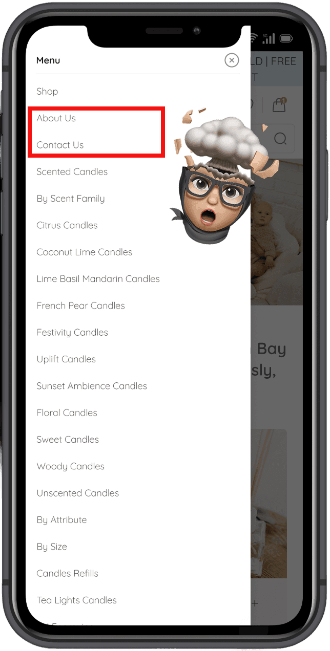 I just want to browse scented candles — but I have to scroll through 40 hyper-specific items to find anything. And why is "Sign In" and "Contact Us" sitting in the middle of the product list?