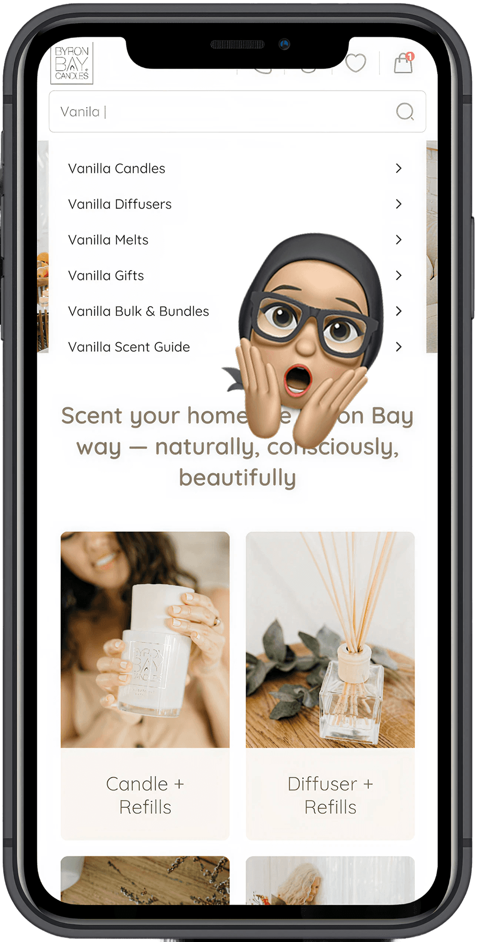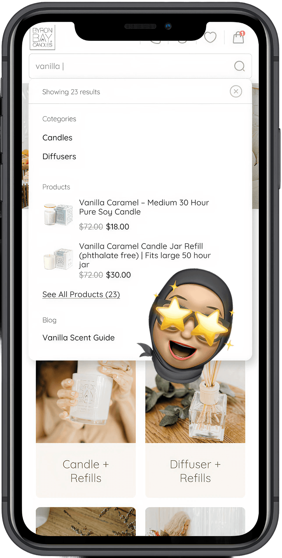 Niiice — "24 results for 'vanilla candle'." Now I instantly know what I'm working with. 24 options? Let me explore!