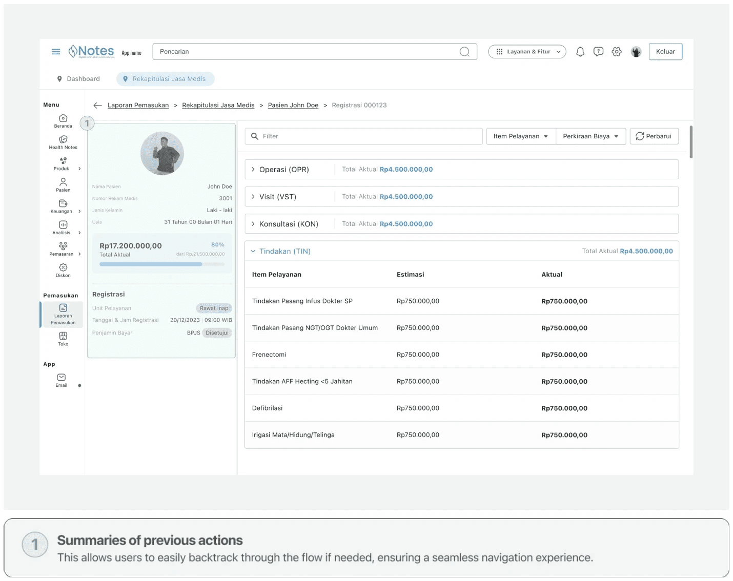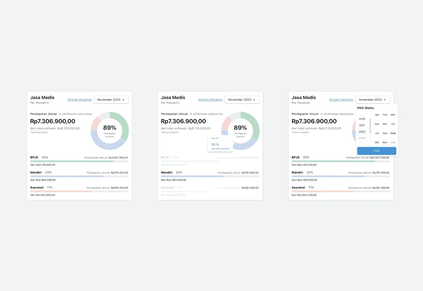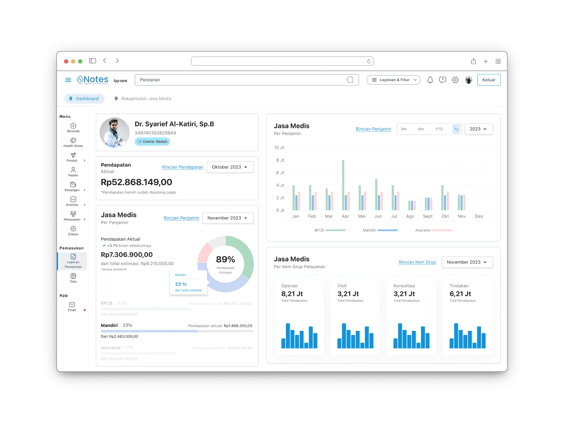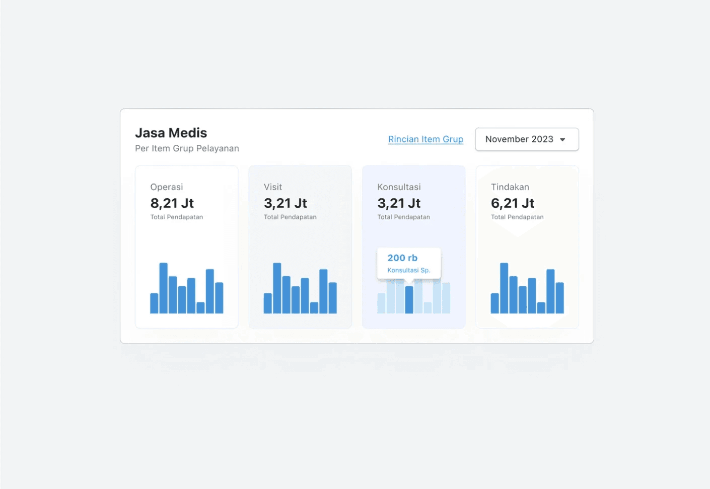 Doctors kept asking: "which consultation is contributing what?" So we built a detail page one tap from the dashboard that breaks income down by patient, consultation type, and service code. Toggle between macro view and patient-level in seconds.