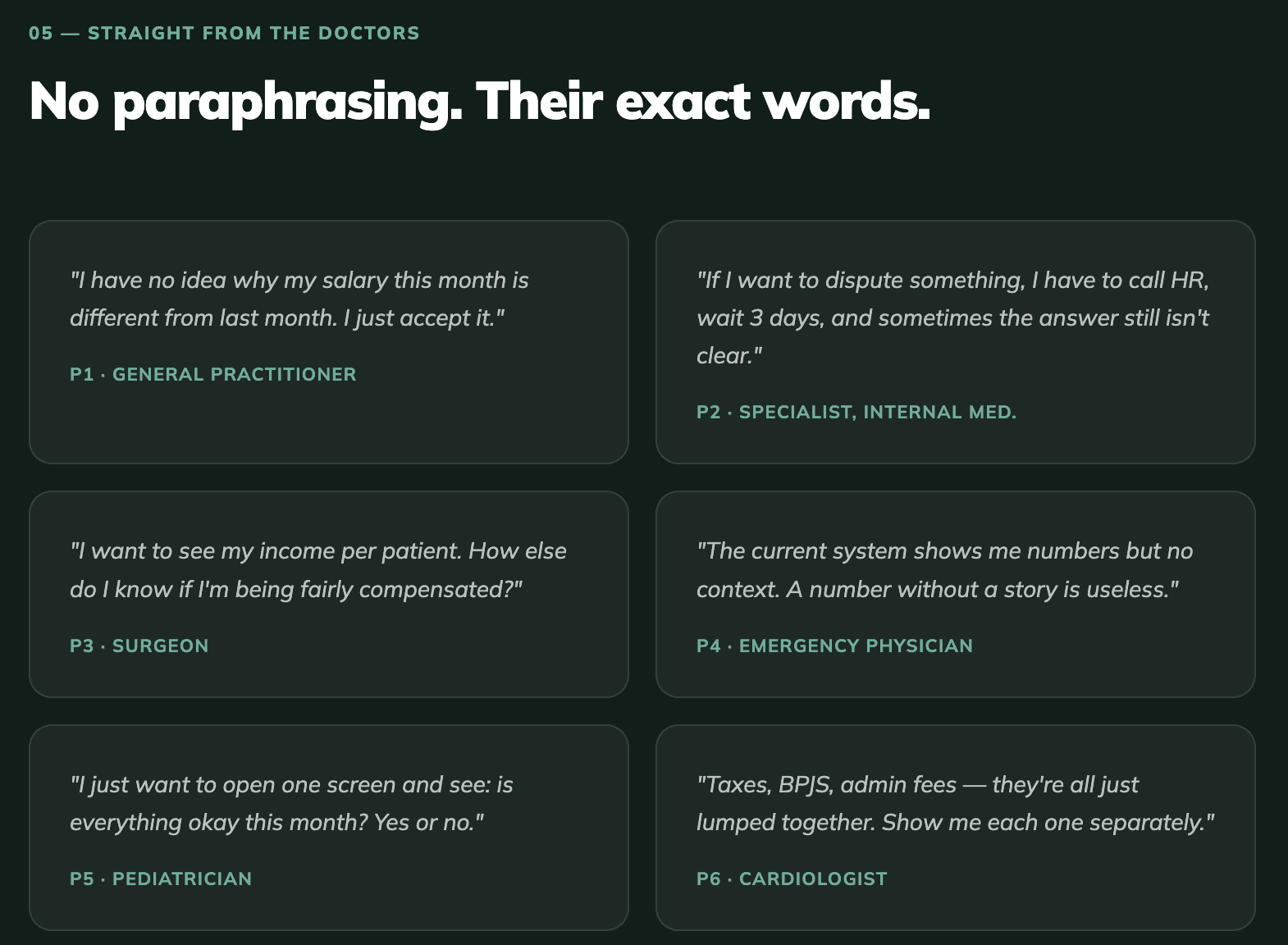 Salary day hits and it's just... a number. No context, no breakdown, no receipts. Deductions show up unlabeled, taxes are invisible math, and figuring it out means emailing HR and waiting 3 days. These are people who diagnose diseases in minutes. They deserved better than a mystery payslip.